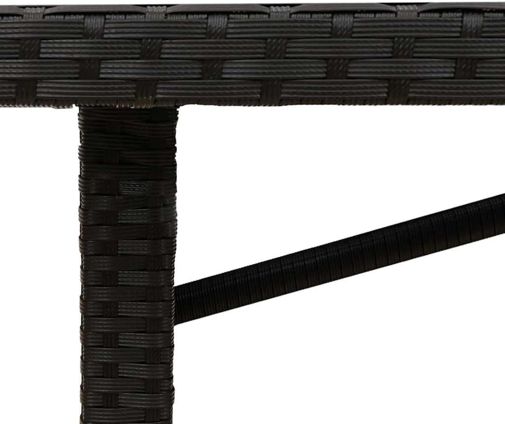 This modern rectangular garden table is all about making your outdoor dining moments better. It’s got loads of space for family and friends and with its classy black finish and clear tempered glass top, it’s a fab centerpiece for any garden, terrace, or balcony.Sturdy Construction: This garden table has a tough powder-coated steel frame that guarantees long-lasting durability and stability for outdoor use.Elegant Design: With a sleek tempered glass surface, this table not only looks good but also provides an easy-to-clean area for dining or hosting.Ample Space: Measuring 74.8 in long and 31.5 in wide, it comfortably seats up to six people, making it ideal for family get-togethers or summer BBQs.Outdoor Dining: Perfect for patios, gardens, and terraces, it fits in nicely with your outdoor furniture, creating an inviting spot for meals or lounging.UV Resistance: Made from quality materials designed to bear the sun, it keeps its charm and strength in bright sunlight.Color: Black Shape: RectangularMaterial: Synthetic Poly RattanFinish: Powder-Coated Indoor/Outdoor: Outdoor OnlyCover Included: NoRoom: Garden and terraceMaximum Number of People: 6Dimensions: 31.5 x 74.8 x 29.1 in (W x L x H)Leg Height: 29.1 inWeight: 57.76 lbsDelivery Contains: 1x garden table with glass topAssembly Required: YesRecommended Number of People for Assembly: 2