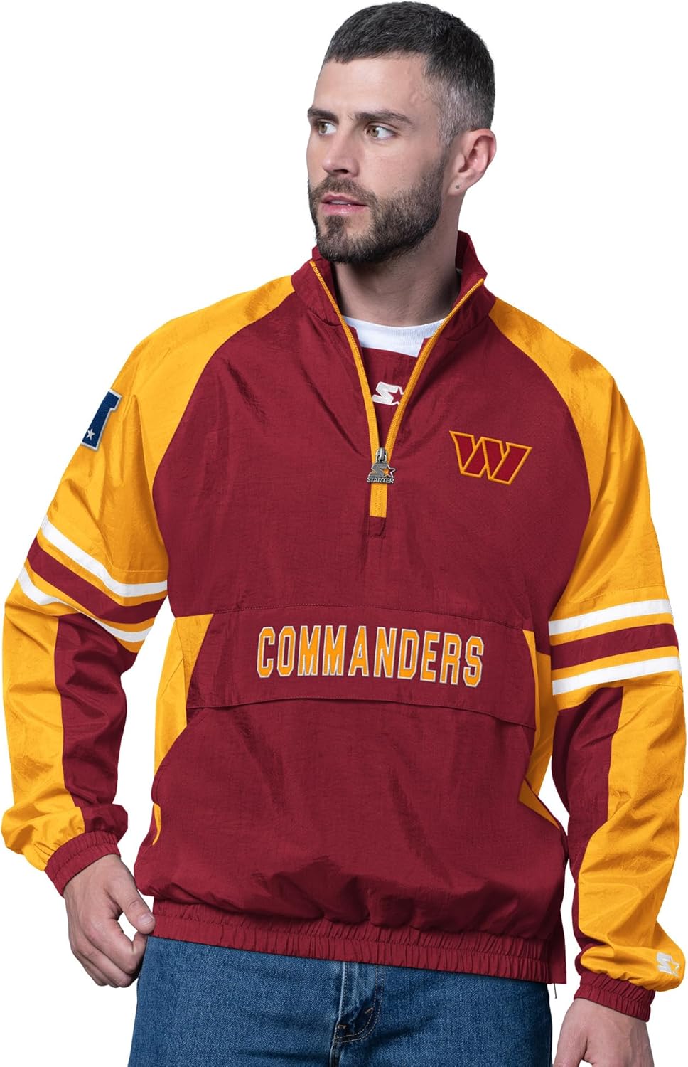 Show your support for the team with this Prospect Half-Zip Pullover by Starter. Designed with crinkle-finish fabric, this lightweight pullover is suitable for mild temperatures and offers a comfortable fit with its elastic cuffs and hem. Applique team graphics on the chest and sleeve boldly display your team pride.